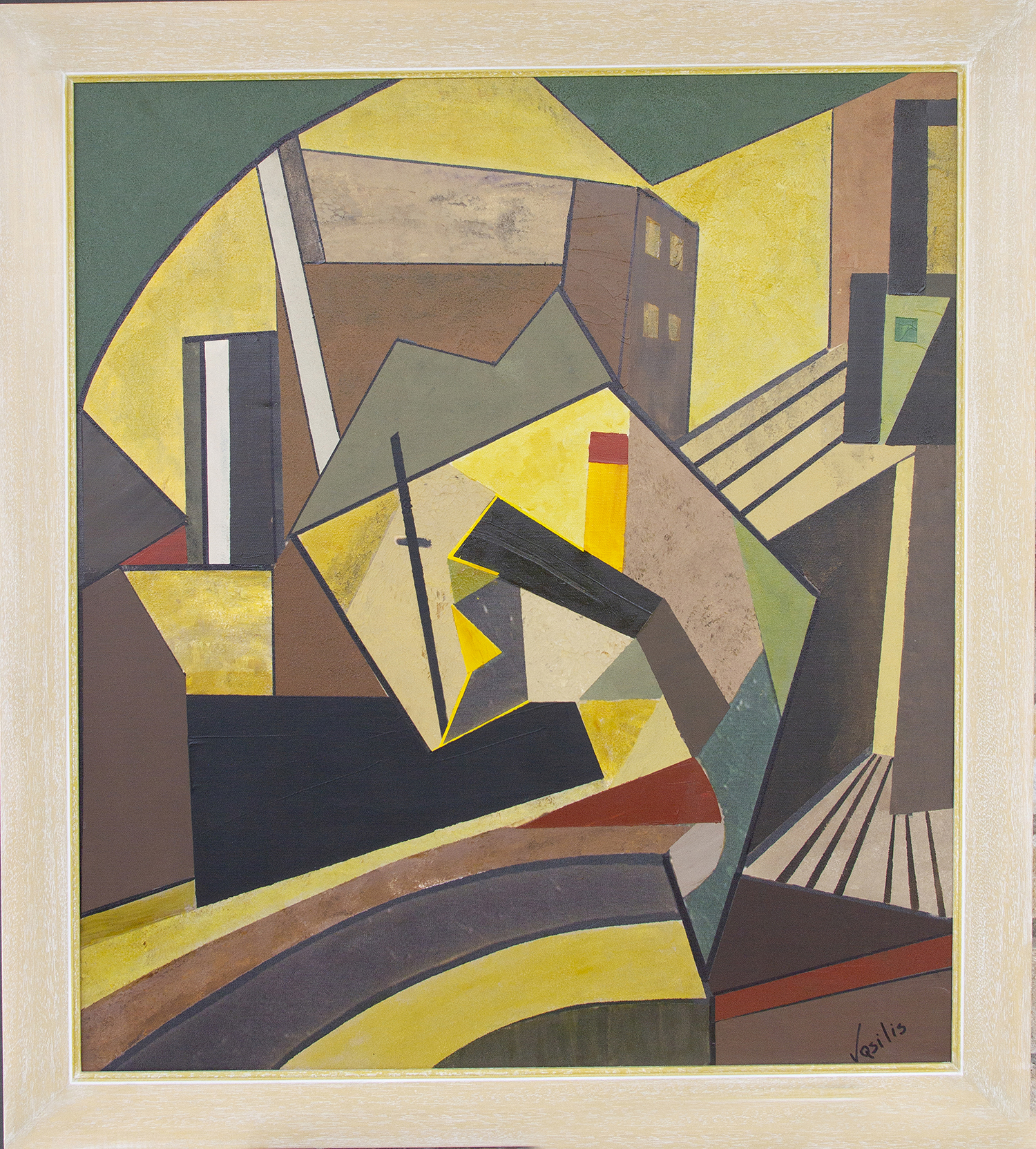 Τεχνοτροπία: Ακρυλικό σε καμβά με έντονες κυβιστικές επιρροές και γεωμετρικές μετατοπίσεις